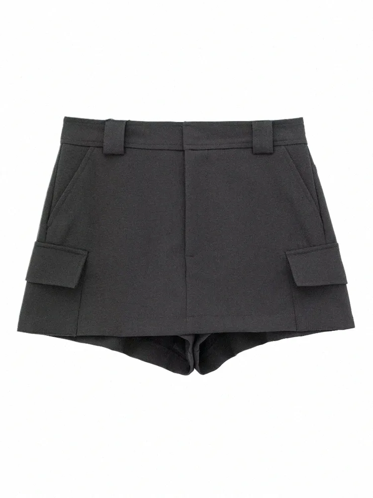 - What womens metallic shorts offer is a slim fit with flap pockets and a zipper fly, providing functional storage and a secure closure for casual wear.